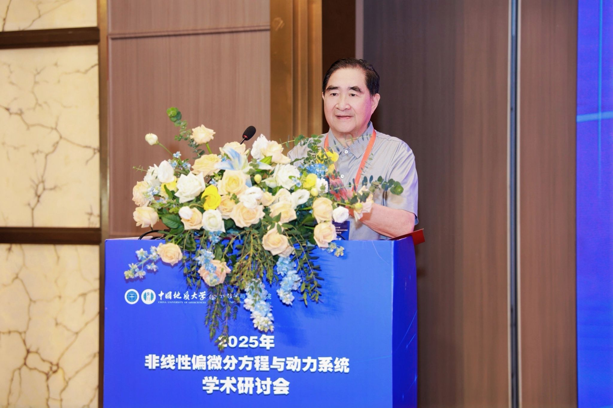 中国科学院院士,著名的应用数学、计算数学专家,北京应用物理与计算数学研究所研究员郭柏灵院士在致辞中向所有与会人员表示衷心感谢,预祝本次研讨会取得圆满成功,并特别提及由于AI的迅猛发展提供了全新工具,当前非线性偏微分方程与动力系统研究的机遇与挑战,同时强调了动力系统及散射方法对于偏微分方程研究的意义。魏周超教授在主持会议时向与会专家简要介绍了 ggjav 微分方程与动力系统研究团队的基本情况,对各位专家长期以来给予的支持和帮助致以诚挚感谢,热忱期待与同行学者开展深入合作,共同推动学科发展!