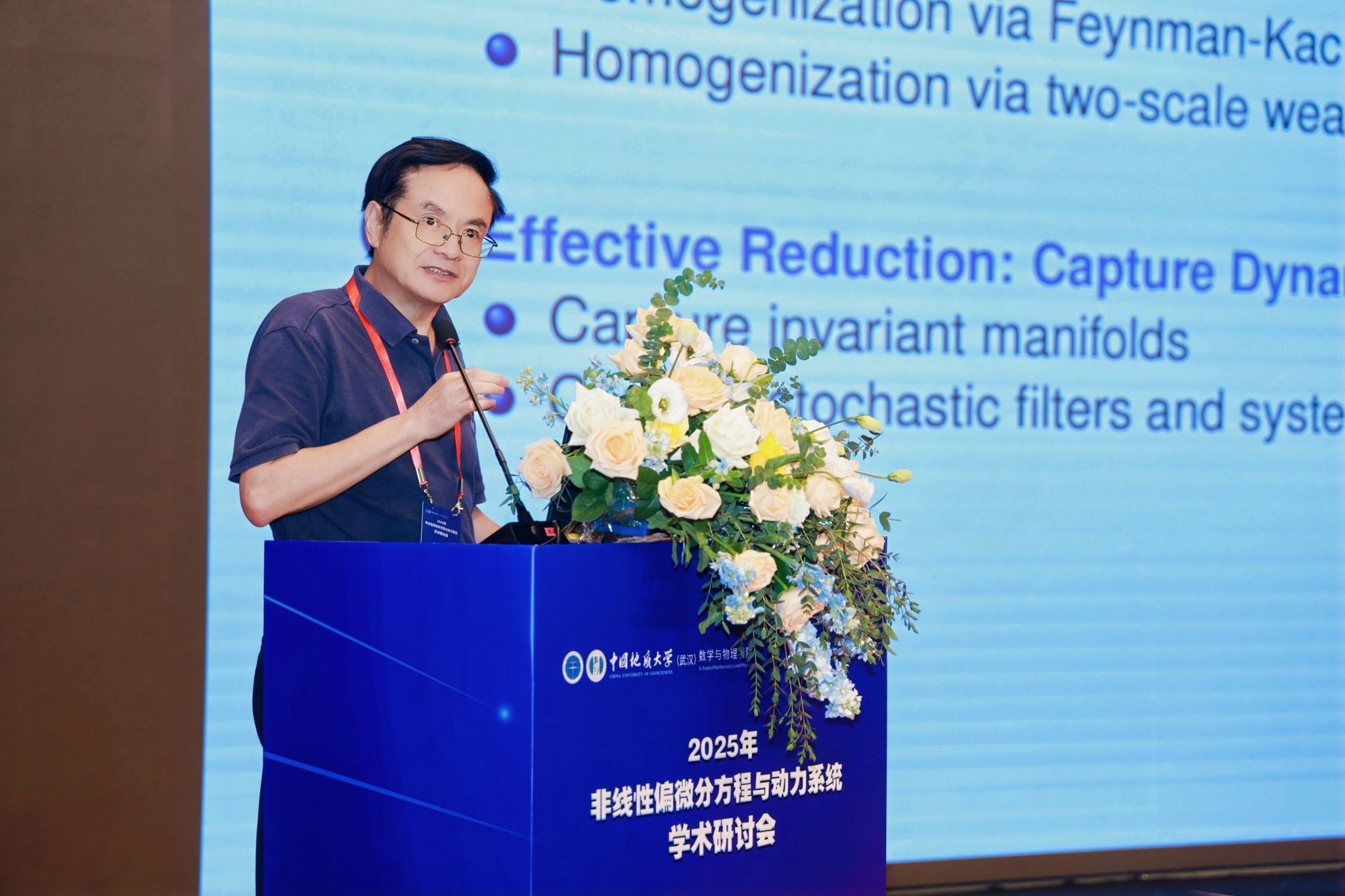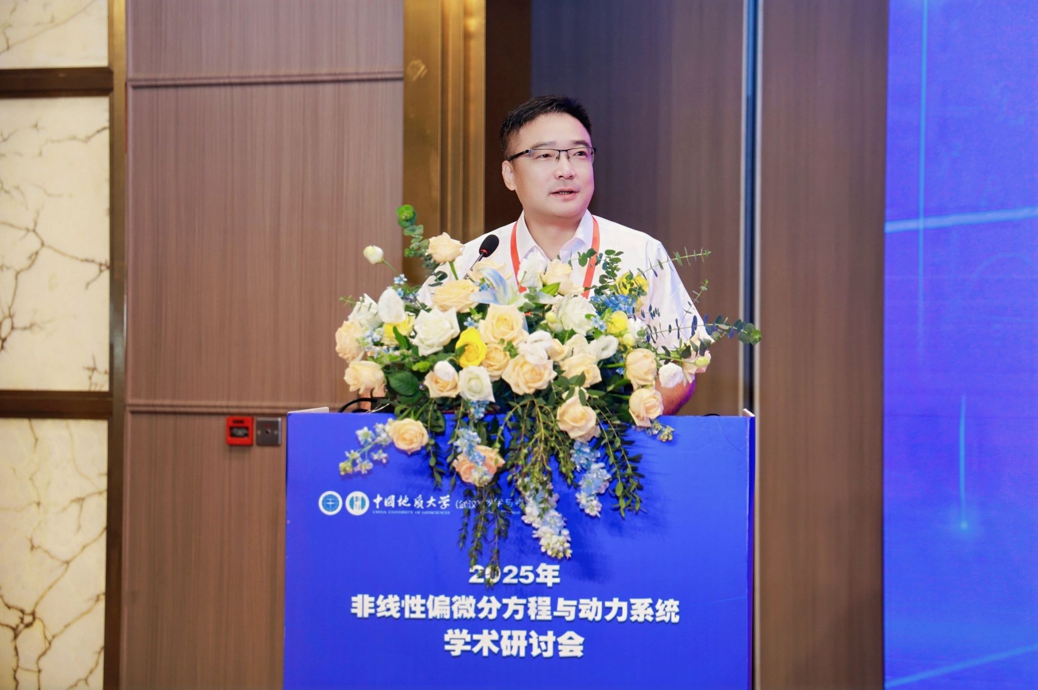 研讨会开幕式由 ggjav (武汉)ggjav 院长魏周超教授主持, ggjav (武汉)副校长王力哲教授,中国科学院院士、著名应用数学与计算数学专家郭柏灵院士出席开幕式并致辞。王力哲副校长代表学校对远道而来的参会嘉宾表示热烈欢迎,详细介绍了学校及 ggjav 近年来在学科建设、人才培养、科技创新等方面取得的突出成果,同时强调此次会议对深化微分方程领域学术交流、推动学科交叉融合、进一步提升 ggjav 在偏微分方程与动力系统领域研究水平的重要意义。
