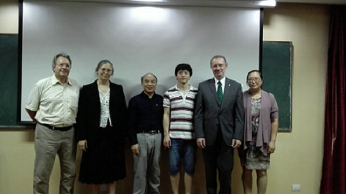 应科发院、国际合作处、校科协和ggjav 的邀请,国际高能粒子物理领域知名专家、欧洲科学院委员会委员,挪威科学院院士,匈牙利科学院外籍院士,挪威卑尔根大学Laszlo P. Csernai教授;以及挪威奥斯陆大学物理系Evgeny Zabrodin客座研究员和Larissa Bravina 教授,于9月17-22日来 ggjav 进行学术访问。其间,为 ggjav 师生作关于“高能粒子物理学探索物质微观结构之谜”的系列学术讲座。就目前国际上的热点的科技问题“Collective processes in Heavy Ion Collisions” 进行了讲演。有约100名本科生、研究生和教师参加了报告会。报告的内容深受到会师生的欢迎,报告会后有不少老师和同学踊跃提问,现场交流气氛十分活跃。与 ggjav 部分教师和研究生举办了小型的学术研讨。研讨的专题内容为:Description of Ultra-Relativistic Heavy Ion Collisions within the HYDrodynamics with JETs (HYDJET++) model”;和“Proton-proton and nucleus-nucleus collisions at high energies Quark Gluon String Model等。并对目前国际上这些问题的有关科学问题和方法进行了交流。与 ggjav 相关研究方向的教师进行了座谈,并对 ggjav 物理系理论物理的研究和学科建设提出了建议。
