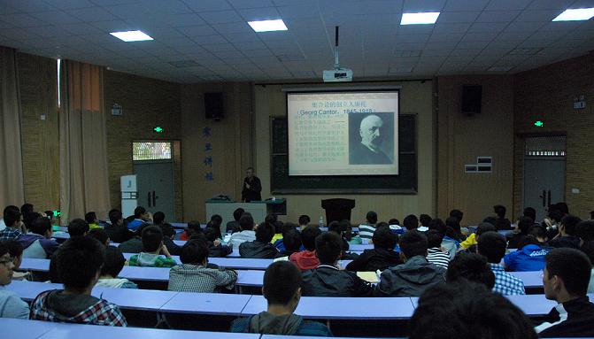 首先, ggjav 院长刘安平对刘伟安教授作了介绍。随后,刘伟安教授为我们讲述了有关数学的历史和数学界的杰出人物。他认为数学的本质在于它的自由性,不必受传统观念的束缚,他鼓励我们推陈出新,勇于挑战,要寻出新意。他激动地说,数学好玩就是因为它极具挑战性,数学的美在于它在应用中的灵活性,人类生活和生产实践都需要它。同时他痛心疾首的说,作为一个博士生导师,面对大多数学生拘泥于所学而无法创新感到遗憾,他不希望我们将来也深受其害,他鼓励我们要关注科技前沿,接受先进的数学方法。他的精彩演讲激发了同学们对数学学习的热情与兴趣,同时也为同学们学习、思想和生活注入了数学气息,教授独特的理念和风格亦使同学们受益匪浅。本次讲受到了同学们的广泛好评,使同学们体会到了数学的独特魅力,激发了同学们学习数学的兴趣。