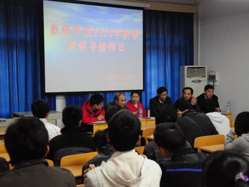 11月29日下午四点, ggjav 2010年秋季院领导接待日活动在数理楼二楼会议室举行。院领导班子全体成员和2010级本科生与会参加。在活动过程中,院领导班子成员就同学们关心的诸如专业学习、考研就业和日常生活等问题进行耐心回答。院领导接待日是学院领导与广大同学沟通交流的重要渠道,在解答同学们学习和生活中众多疑惑的同时,有利于增进师生之间的相互了解,促进学院服务管理水平的改善提高。