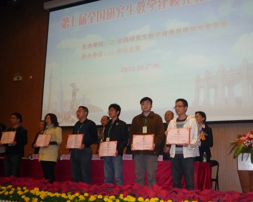 2010年9月17日,全国第七届研究生数学建模竞赛颁奖仪式在广州中山大学举行。 ggjav 院长刘安平教授、副院长彭放教授,校研工部李红丽副部长以及4名一等奖获得者参加此次活动。
