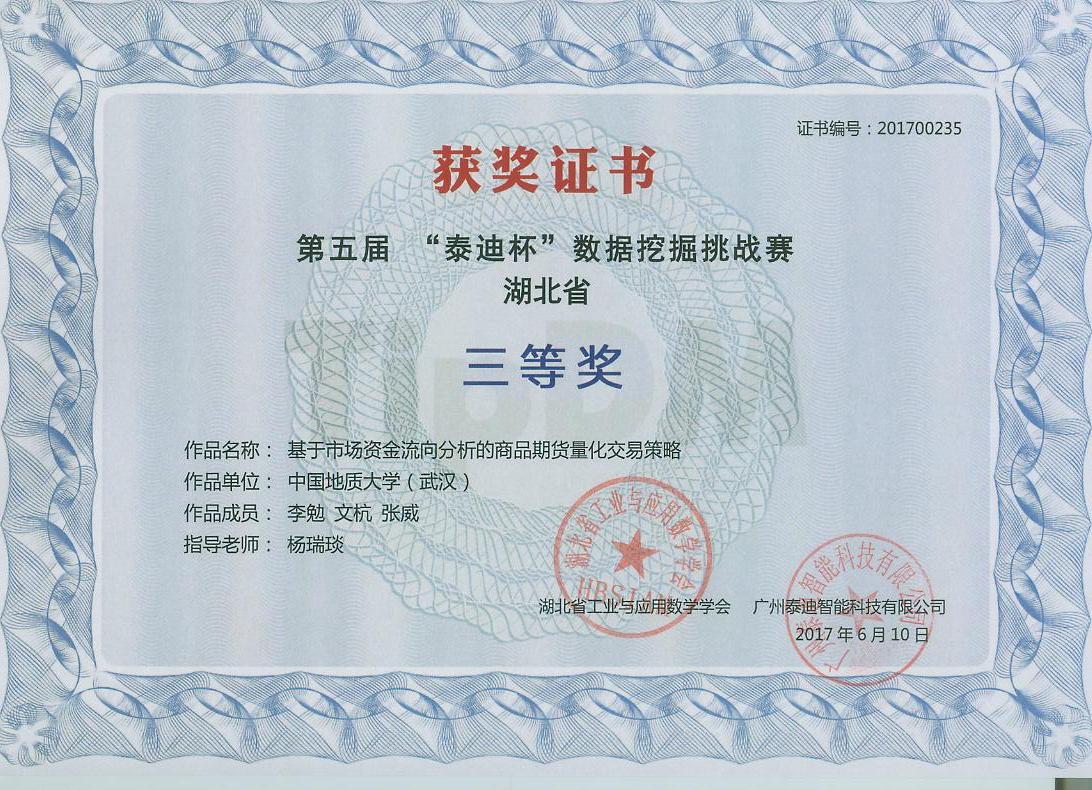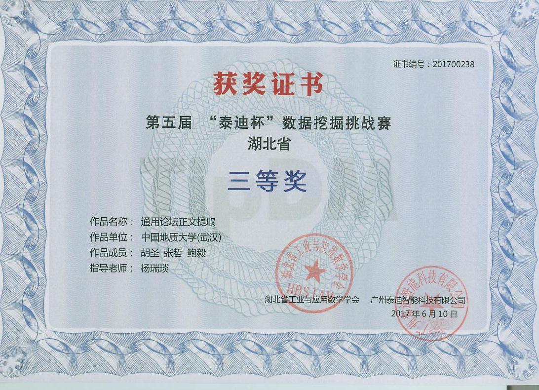据“泰迪杯”数据挖掘挑战赛组委会近日公布的结果,在2017“泰迪杯”竞赛活动中, ggjav 第一次参加此项活动,在3支代表队中获得湖北省三等奖2项的好成绩。
