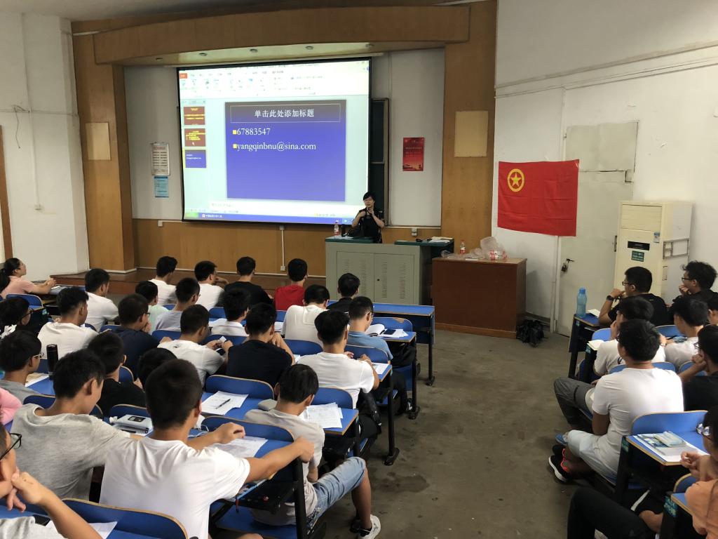 会议第二项由学校心理健康咨询中心的杨琴老师作心理健康教育讲座。杨老师首先指出了大学生存在的心理问题,从环境的适应、人际关系的适应、积极地自我态度三方面指出如何正确适应陌生环境,通过案例分析使2018级新生对心里健康的重要性有了进一步的认识,并跟在座的学生进行了亲切地互动交流。