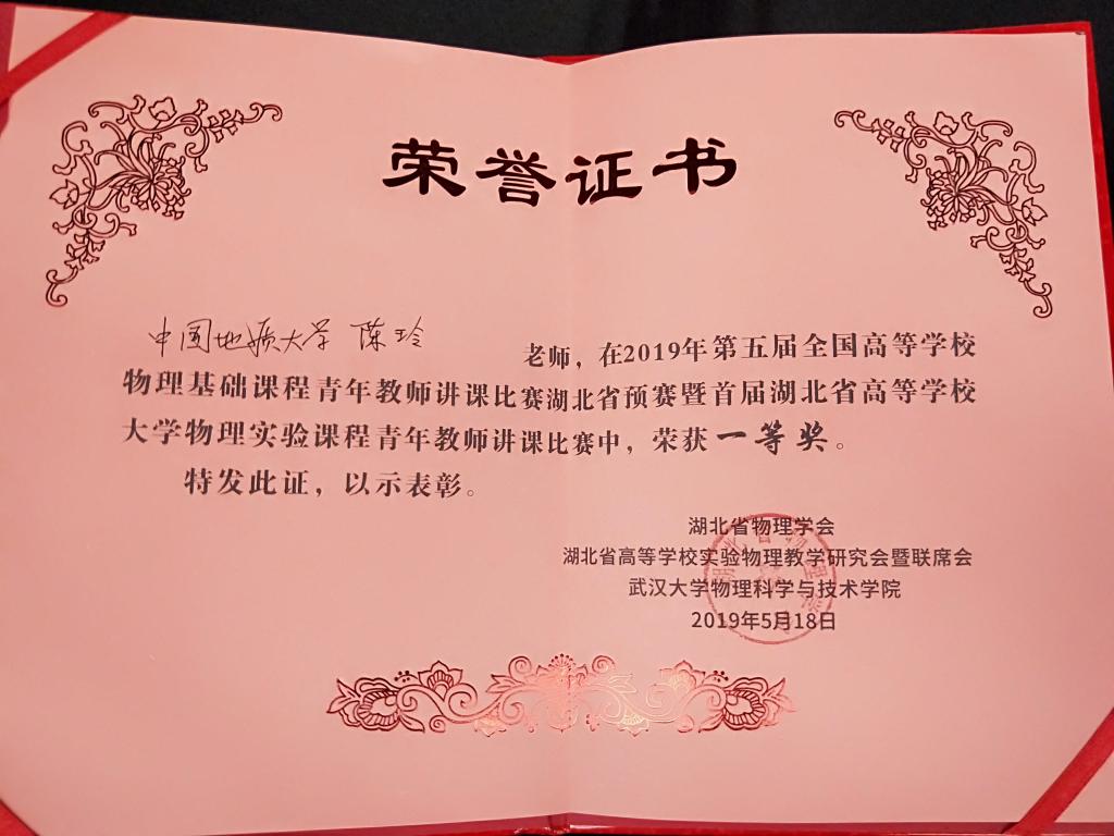 2019年5月18日,第五届全国高等学校物理基础课程青年教师讲课比赛湖北省预赛暨首届湖北省高等学校大学物理实验课程青年教师讲课比赛在武汉大学举行, ggjav ggjav 物理实验教学中心青年教师陈玲老师获得一等奖。