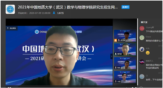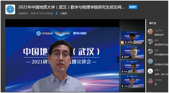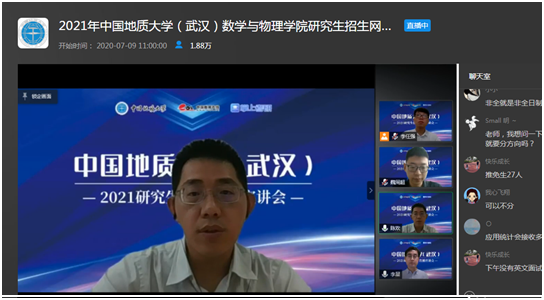 7月9日上午, ggjav 副院长魏周超、物理系主任陈欢、信息与计算科学系主任李星通过中国教学在线网络直播平台,向同学们介绍了 ggjav 数学、物理、应用统计三个研究生招生学科的基本情况,并回答了同学们提出的各种问题。据统计,直播结束时,有大约1.8万余人参与了本次直播活动。