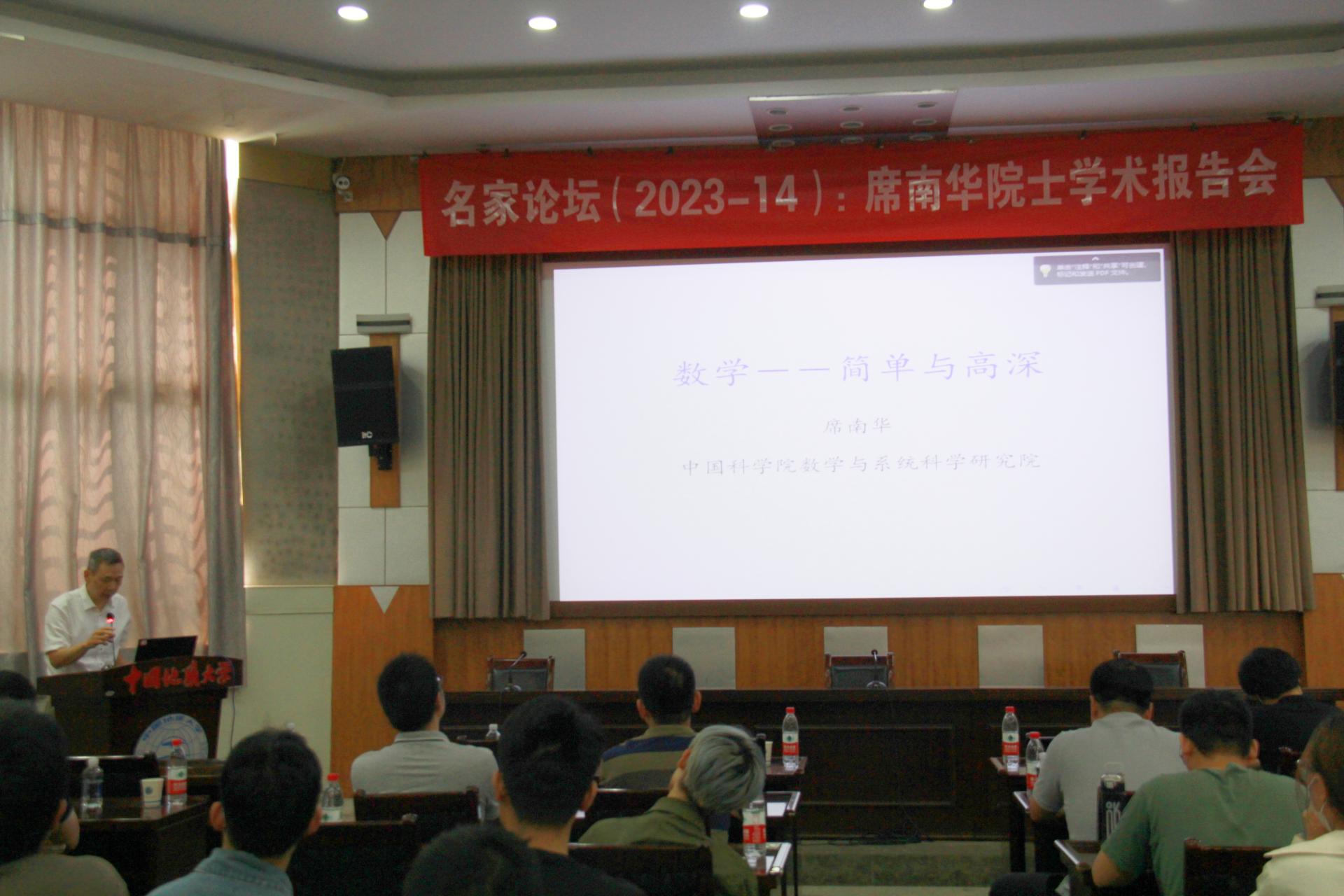 2023年5月27日,中国科学院院士、中国科学院数学与系统科学研究院研究员、上海科技大学副校长席南华教授应邀做客 ggjav (武汉)名家论坛,在南望山校区八角楼学术报告厅作了题为“数学—简单与高深”的学术讲座。报告会由院长郭上江教授主持。