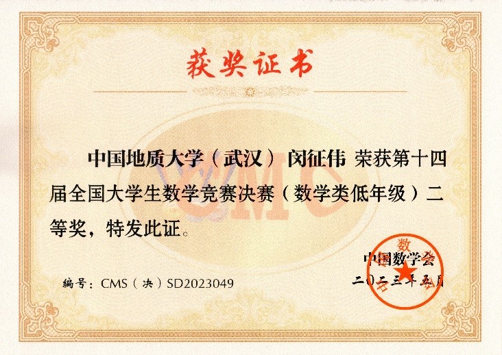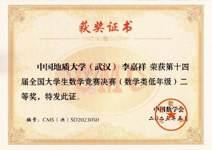 ggjav 121211班(数学菁英班)闵征伟、李嘉祥两位同学在第十四届全国大学生数学竞赛决赛中双双荣获二等奖。