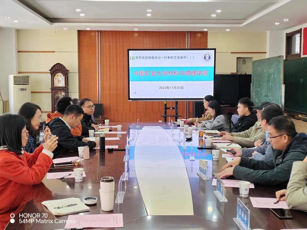 中国矿业大学材料与物理学院党委副书记纪承对 ggjav 到访表示热烈欢迎。纪承副书记介绍了学校与学院的基本情况,重点就学院历史沿革、学生培养、党建工作等方面进行了交流。分享了学院学生培养“四精工程”、研究生导学思政、研究生样板支部建设工作、学生就业工作、辅导员队伍建设工作等学院特色做法和取得的成绩。
