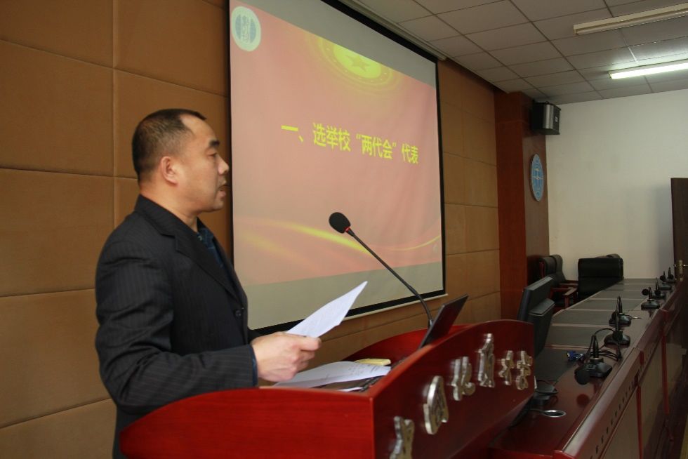 会议第一项议程是选举产生学校第十届教教职工代表大会暨第十九届工会会员大会(简称“两代会”)代表。院分工会主席王希成介绍了校“两代会”14名候选人名单产生过程及选举办法,会议通过了监票人和计票人名单,经与会教职工无记名投票表决,差额选举产生了11名新一届学校“两代会”正式代表,分别是:于晓舟(女)、王军霞(女)、王希成、卢成、何开华、张保成、张光勇、郭万里、徐超、黄刚、魏周超。