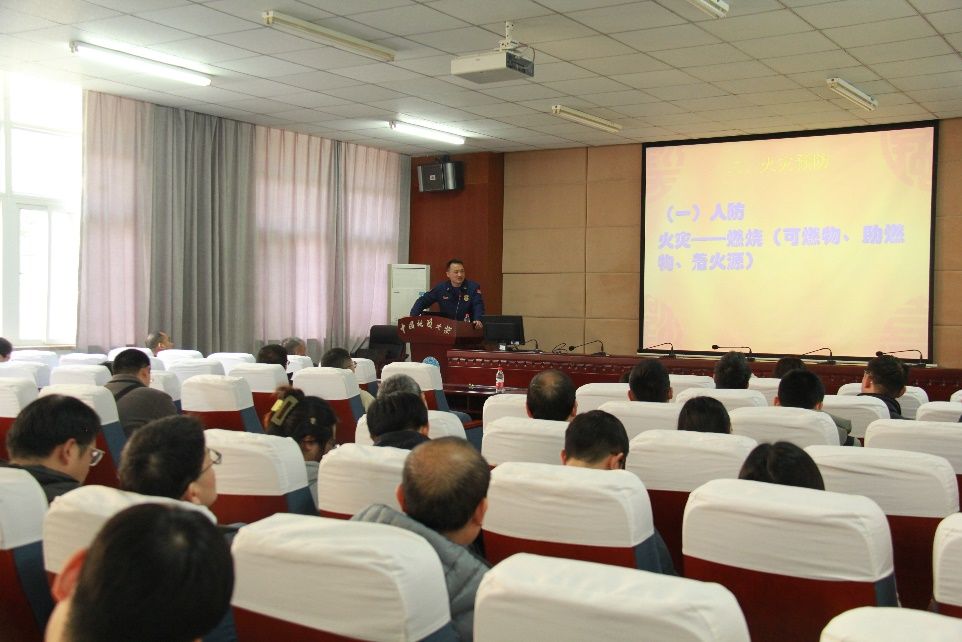 本次会议还邀请了武汉东湖新技术开发区关山消防救援站党支部书记、政治指导员李长洋为全院教职工开展消防安全知识专题讲座。他重点介绍了火灾的预防、初期火灾的扑救、火场自救与逃生、高楼火灾逃生内容,并对过滤式消防自救呼吸器、烟雾传感器、消防栓、灭火器的使用技巧等进行了现场培训。(通讯员 王希成 审核人 于晓舟)