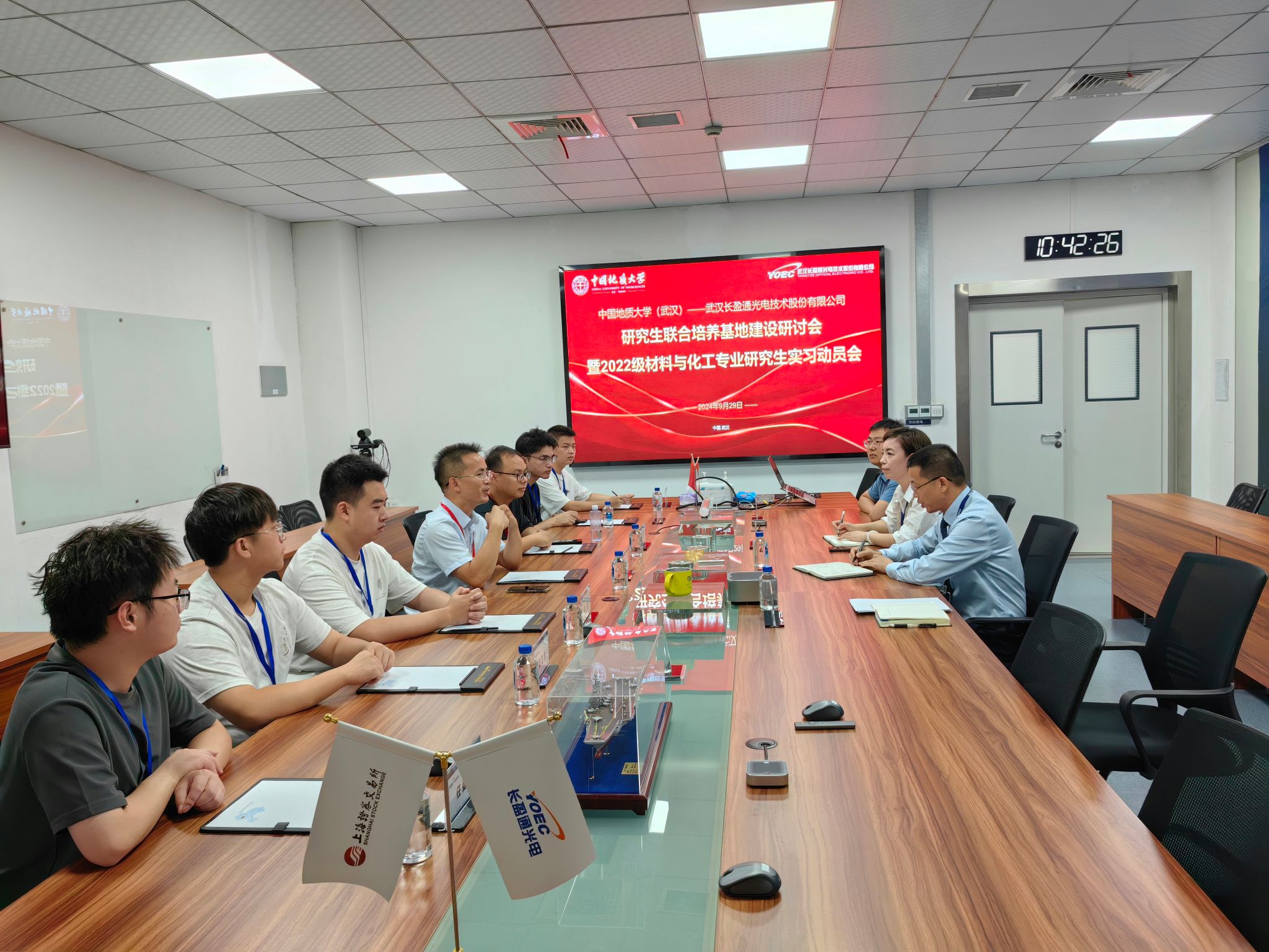 会后,ggjav 卢成教授等组织材料与化工专业2022级硕士研究生赴研究生联合培养基地-武汉长盈通光电技术股份有限公司开展实习。参加实习的研究生先后参观了长盈通科技成果展厅,了解了长盈通发展历程、战略布局和未来科技产业规划等,学习了长盈通安全管理体系、各分公司研发方向,并了解了长盈通人才培养和管理体系。长盈通副总裁邝光华、研发中心工程师刘华以及人力资源部等相关人员出席2022级材料与化工专业硕士研究生实习实践动员会。学院与长盈通公司副总裁邝光华就研究生联合培养基地建设、研究生专业实习、未来科技合作等工作进行了座谈交流。