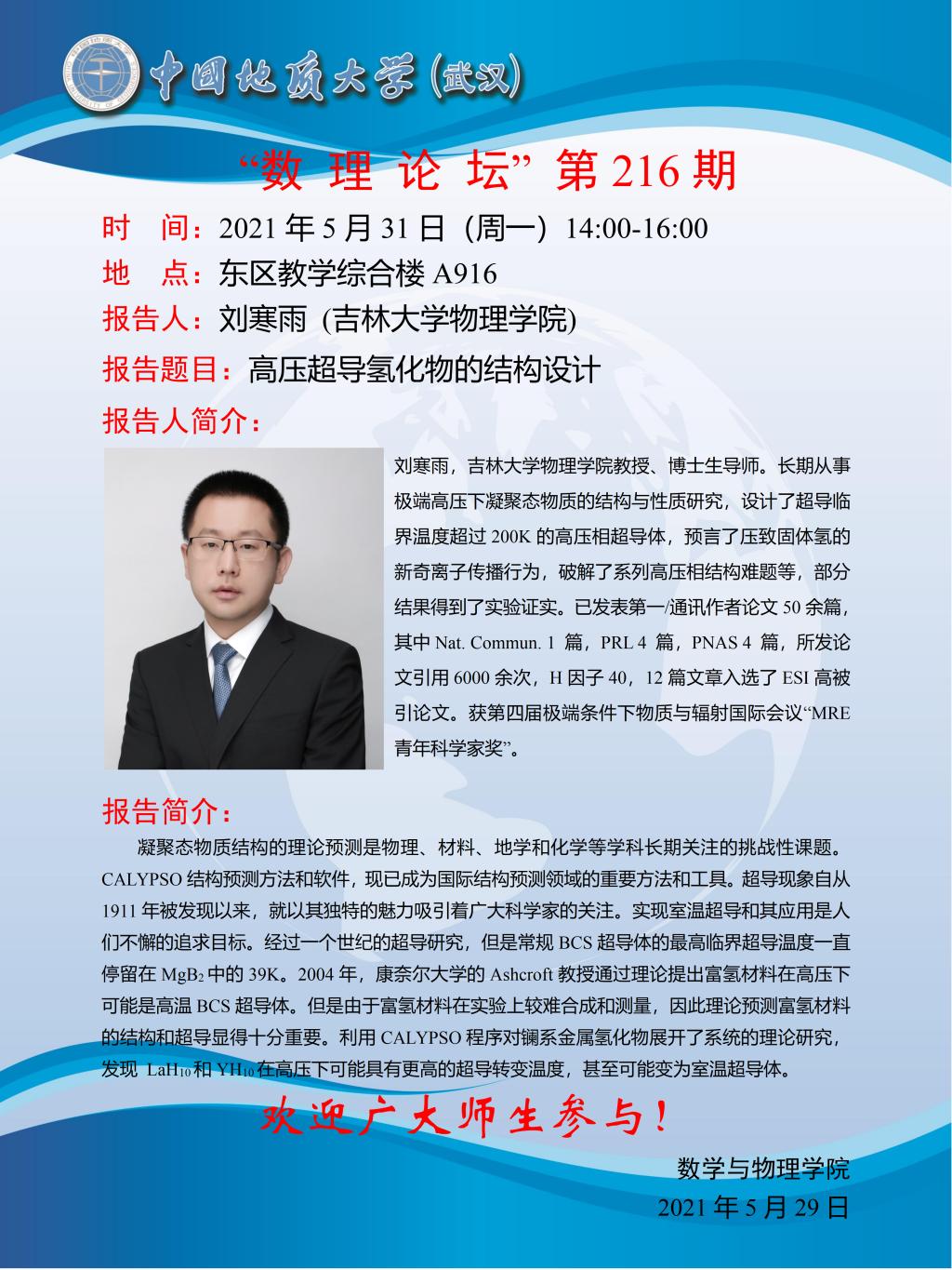 "数理论坛"第216期:高压超导氢化物的结构设计