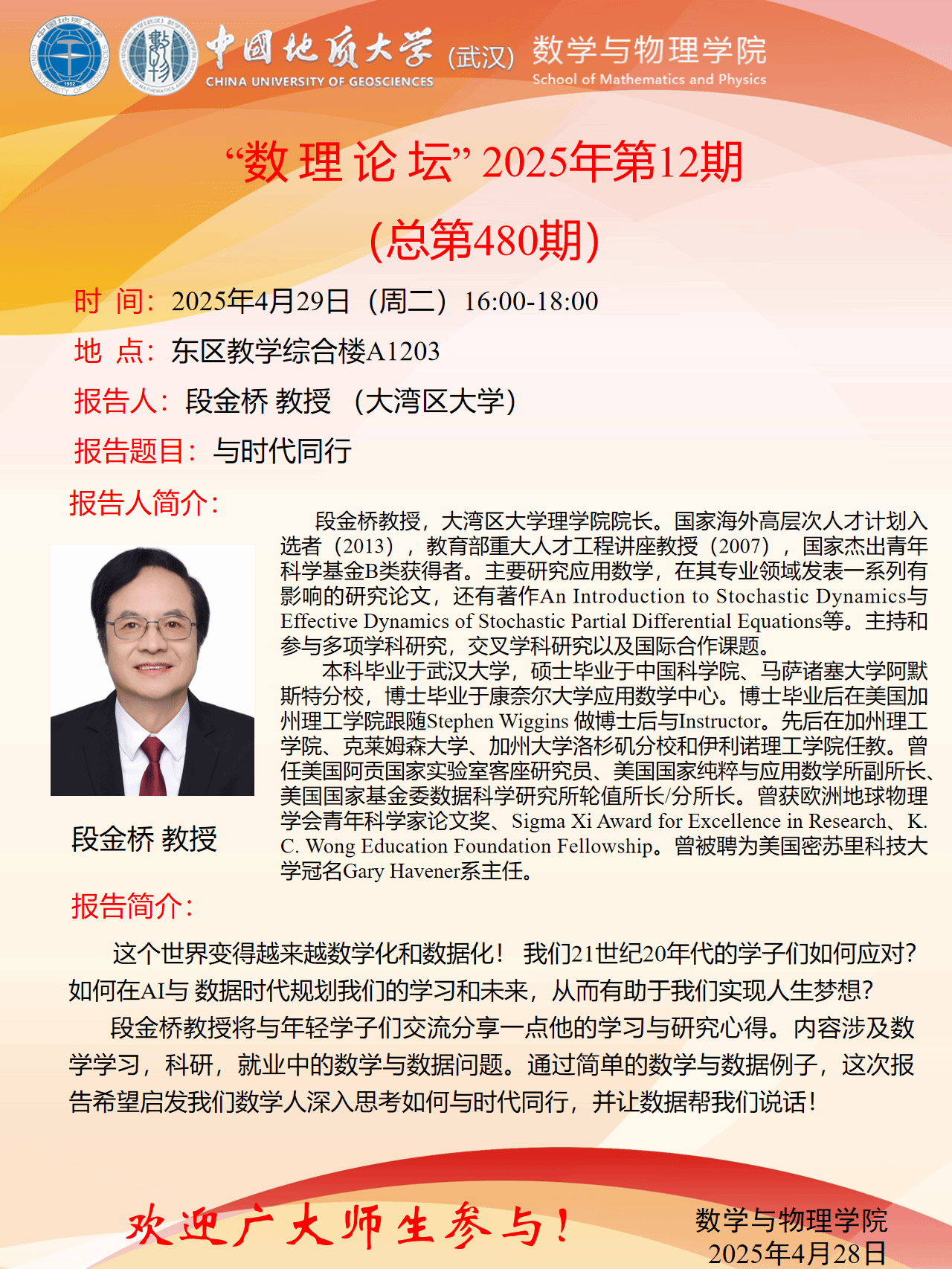 2025年4月29日段金桥教授学术讲座:与时代同行