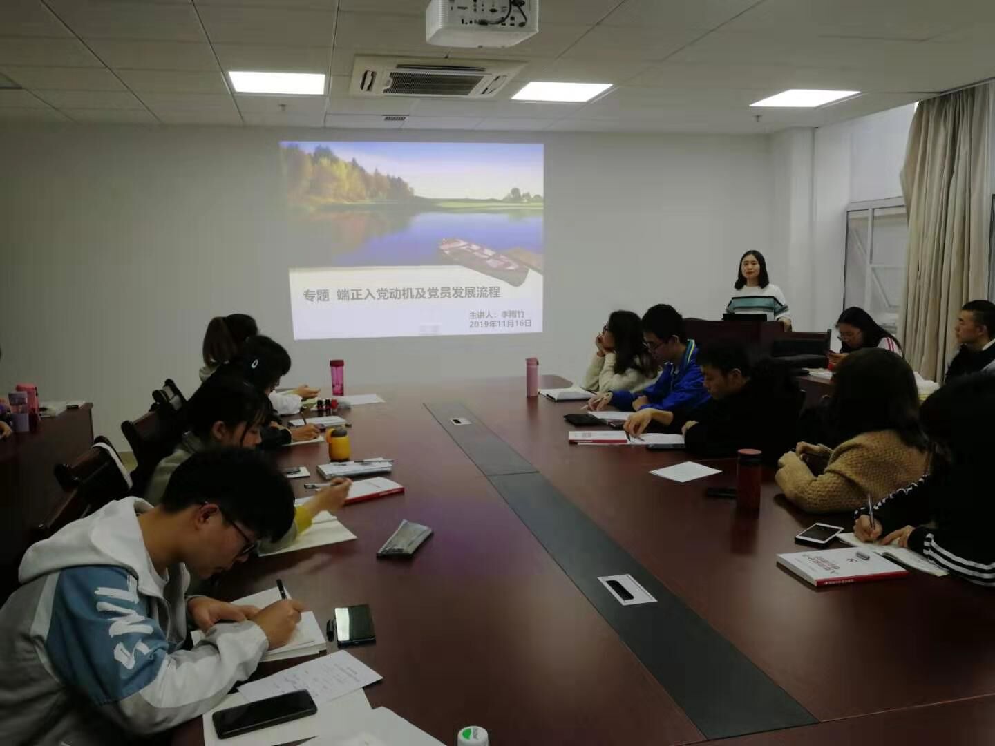 李雨竹老师从多方面讲解了端正入党动机的重要性以及如何端正入党动机。以视频形式让大家详细了解入党流程,她重点强调了方针、原则的重要性。最后,她阐述了自己对入党的理解。