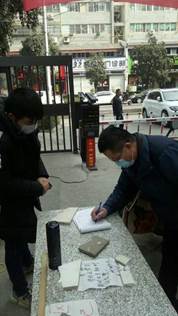 抗疫期间, ggjav 122181班李钰龙同学主动报名参加了当地社区抗疫志愿服务活动,他主要负责社区出入人员的登记及体温测量的工作。