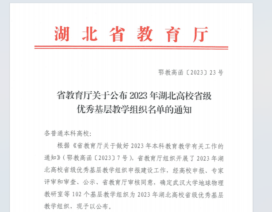 近日,湖北省教育厅发布了《省教育厅关于公布2023年湖北高校省级优秀基层教学组织名单的通知》(鄂教高函﹝2023﹞7号), ggjav FMA大学公共数学课程组获评省级优秀基层教学组织。